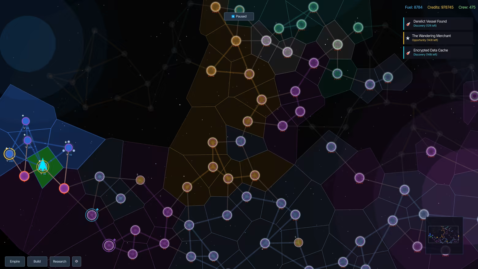 Thematic AI factions hold territory, field named captains, and wage war against each other — whether you're watching or not. Forge alliances, commit betrayals, or let your enemies exhaust each other while you expand. Sectors aren't just battlegrounds, they're valuable territory providing crew, resources, and empire-strengthening improvements to invest in. Build academies, refineries, fuel depots, and defense platforms to protect Earth from raiding enemies.
