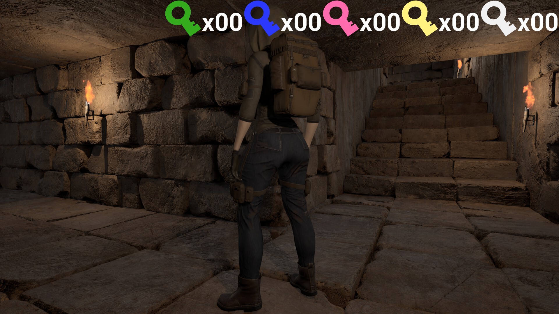 - Five key colors (blue, red, green, yellow, white) match doors of the same color. You cannot open a door without its key.