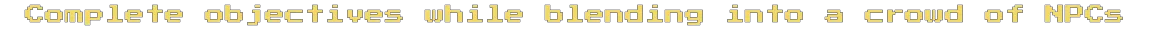 Sneaky Bimbuls is a local multiplayer (2-8 players) game where players must accomplish goals while hiding in a crowd of NPCs before being caught by the other team.
