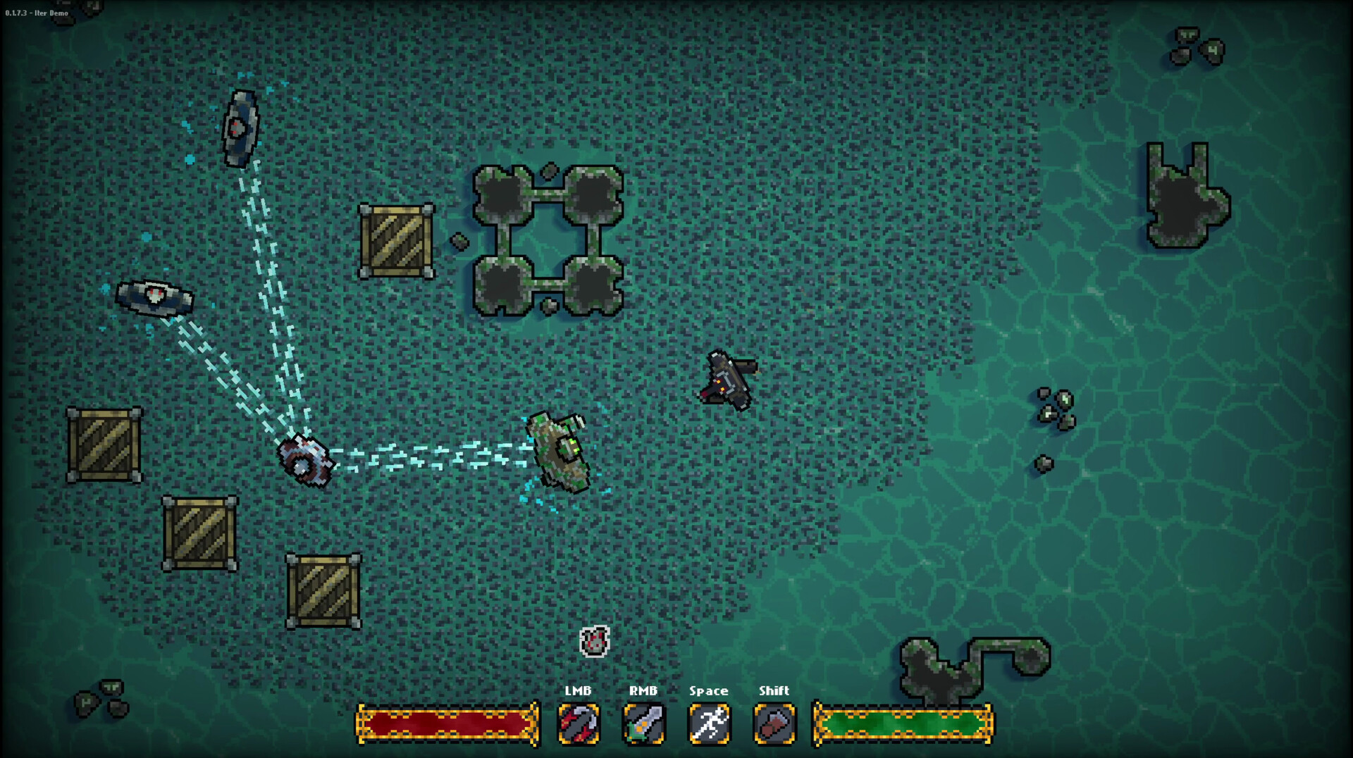 Iter is a real-time souls-inspired action-adventure game. Traverse dungeons, fight your way through a variety of enemies, and customize your loadout with weapons and abilities that you will find throughout the game.
