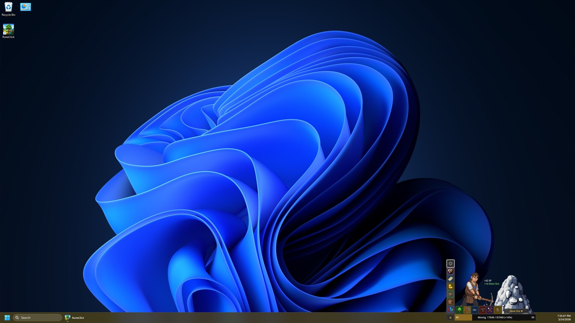 RuneClick is a desktop overlay RPG that turns your daily computer use into character progression. A pixel art medieval character lives on your screen and reacts to your real keyboard and mouse input. Type an email, he chops a tree. Click through a spreadsheet, he mines ore. Close your laptop, he does nothing. Every keystroke is progress. Every click counts.