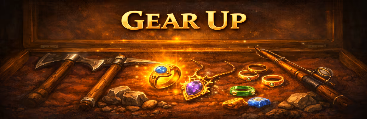 Craft tools that make you gather faster. Cook food that boosts your XP. Cut gems into jewelry with passive bonuses. Five tiers of progression across every gathering skill, with extremely rare variants at the top that you'll be chasing for a long time. Every upgrade is something you built from materials you earned.