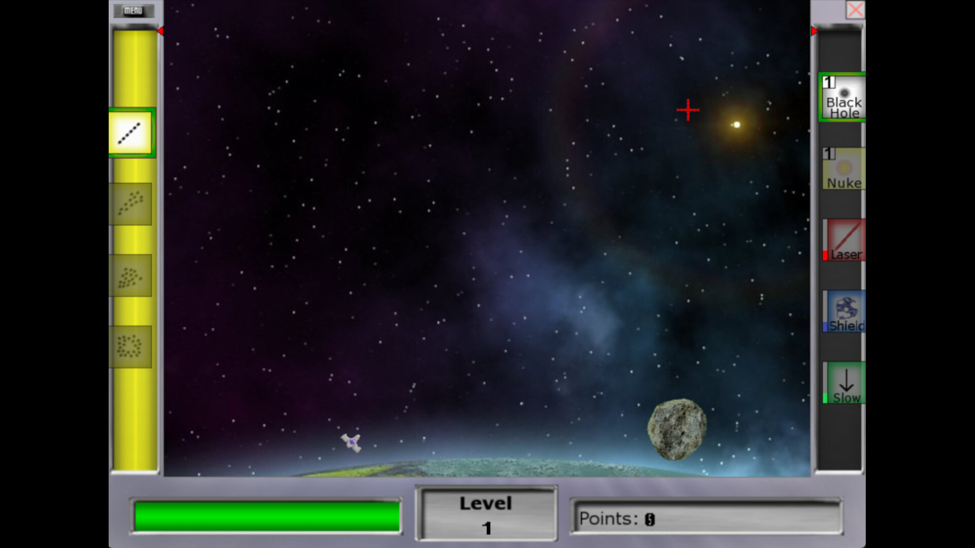 Shoot meteors with a variable fire main, and various different power-ups. Survive and set a new hi-score today!