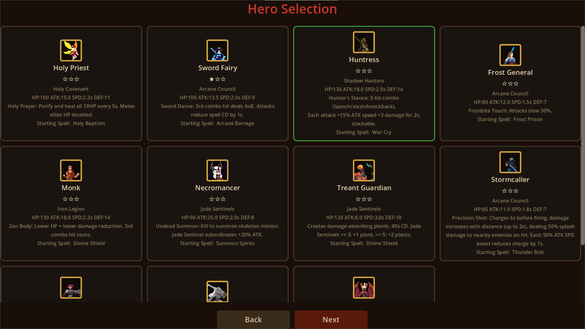 Light Priestess, Frost General, Shadow Assassin… Each hero has a unique passive talent, exclusive skill, and starting spell, offering distinctly different combat styles.