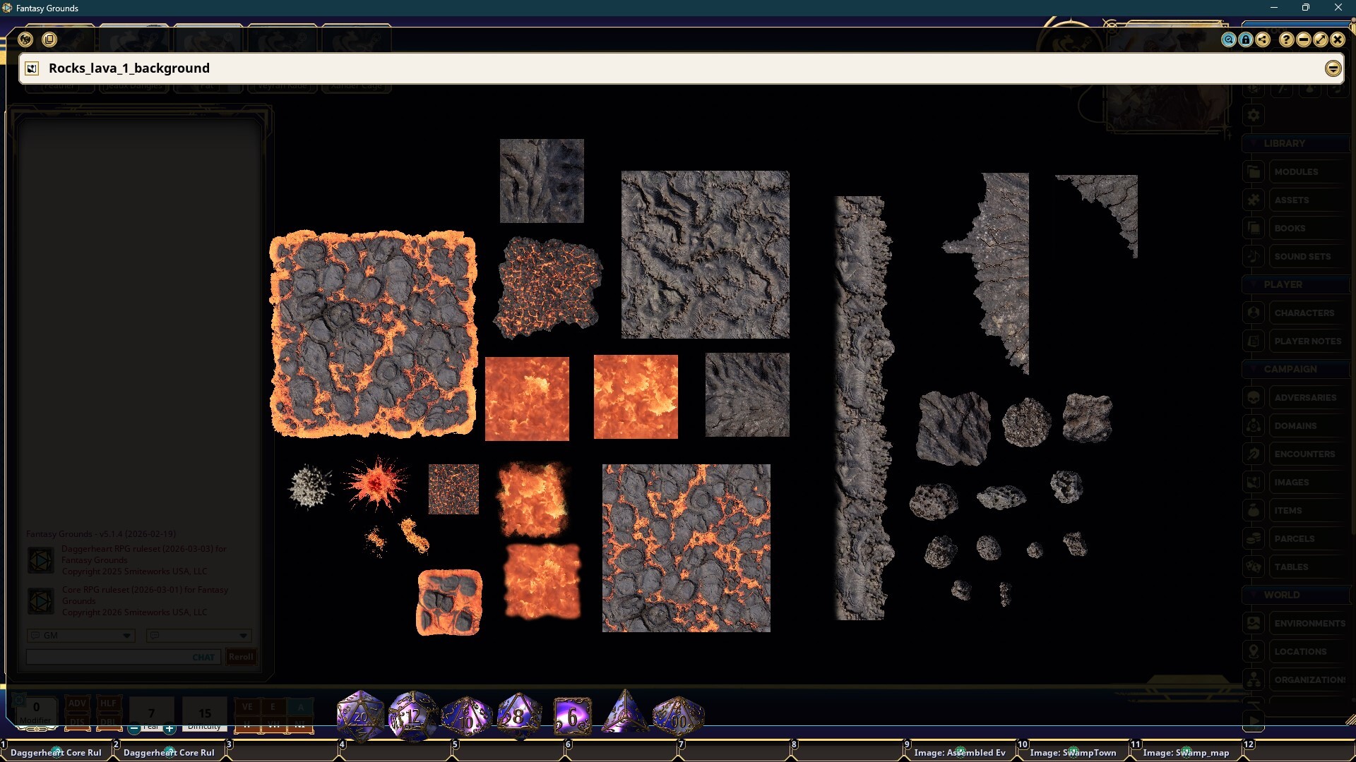 • Fills include rock textures, lava textures, lava and rock mixes