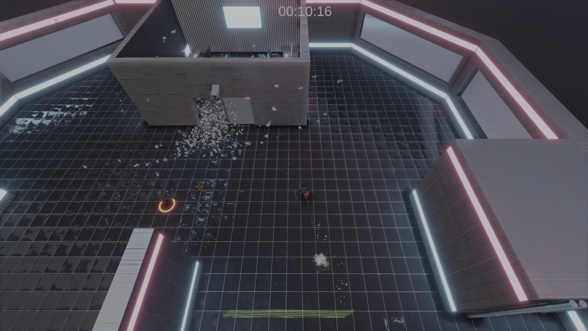 A frantic, 3D top-down shooter where the gameplay loop constantly evolves as you rip cybernetic implants from your defeated bosses.