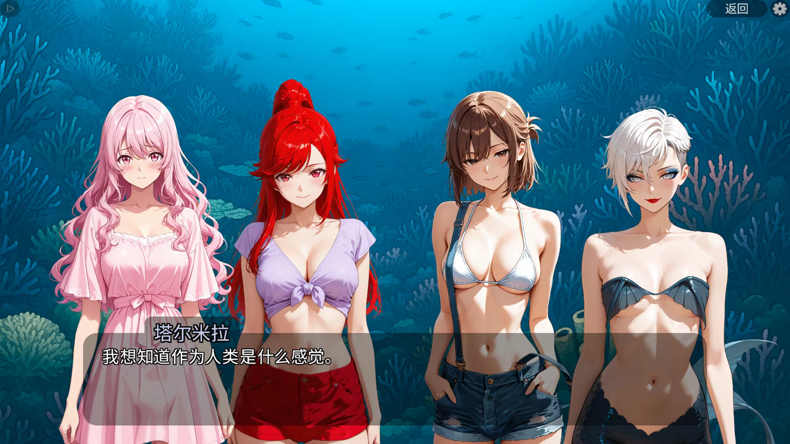 四条美人鱼一起来到海之女王塔尔米拉面前,恳求她把自己也变成人类。
