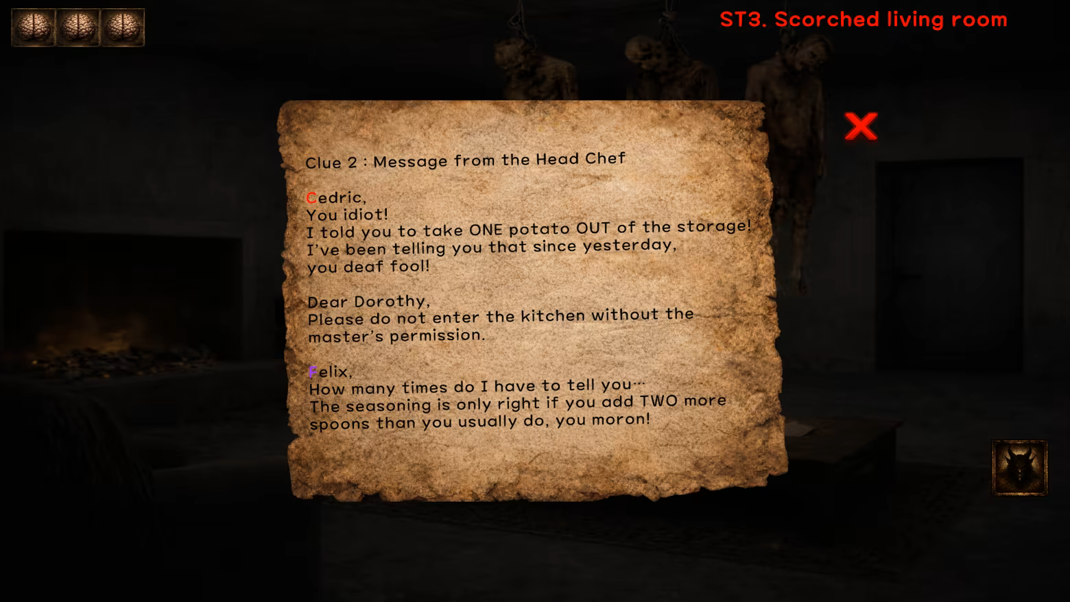 Throughout the game, the personalities within you provide hints and insights that help interpret the clues you discover.