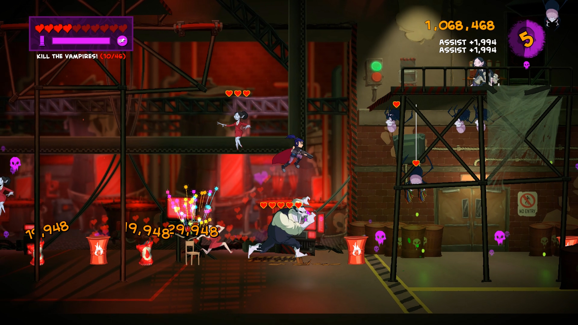 Cause distress in this fast-paced, challenging action platformer! Speed through dozens of missions as Special Agent Damsel, the first and last line of defence against the seedy world of corporate vampires. Rescue hostages, disarm bombs, hack servers and dispatch the undead with precision, speed, and style. Balance frenetic action with split second choices, and pay attention, you never know where the next vamp will come from.
