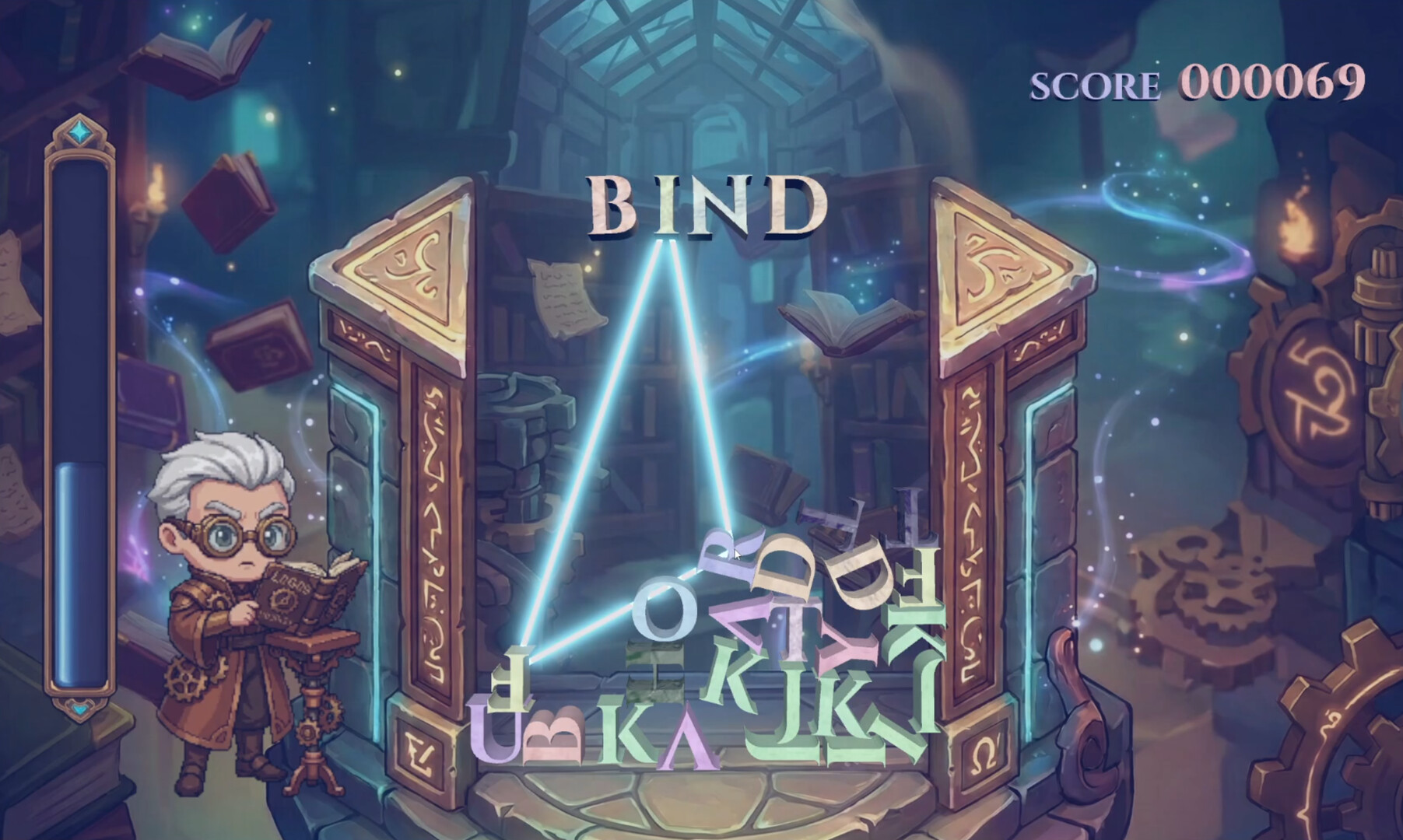 • Incantations that Manifest The words you forge aren't just points—they are spells that act upon the world. A simple "FIRE" sparks a flame, but a grander "BLAZE" engulfs the field in an inferno, clearing vast areas for a massive score. Your lexicon is your greatest weapon.
