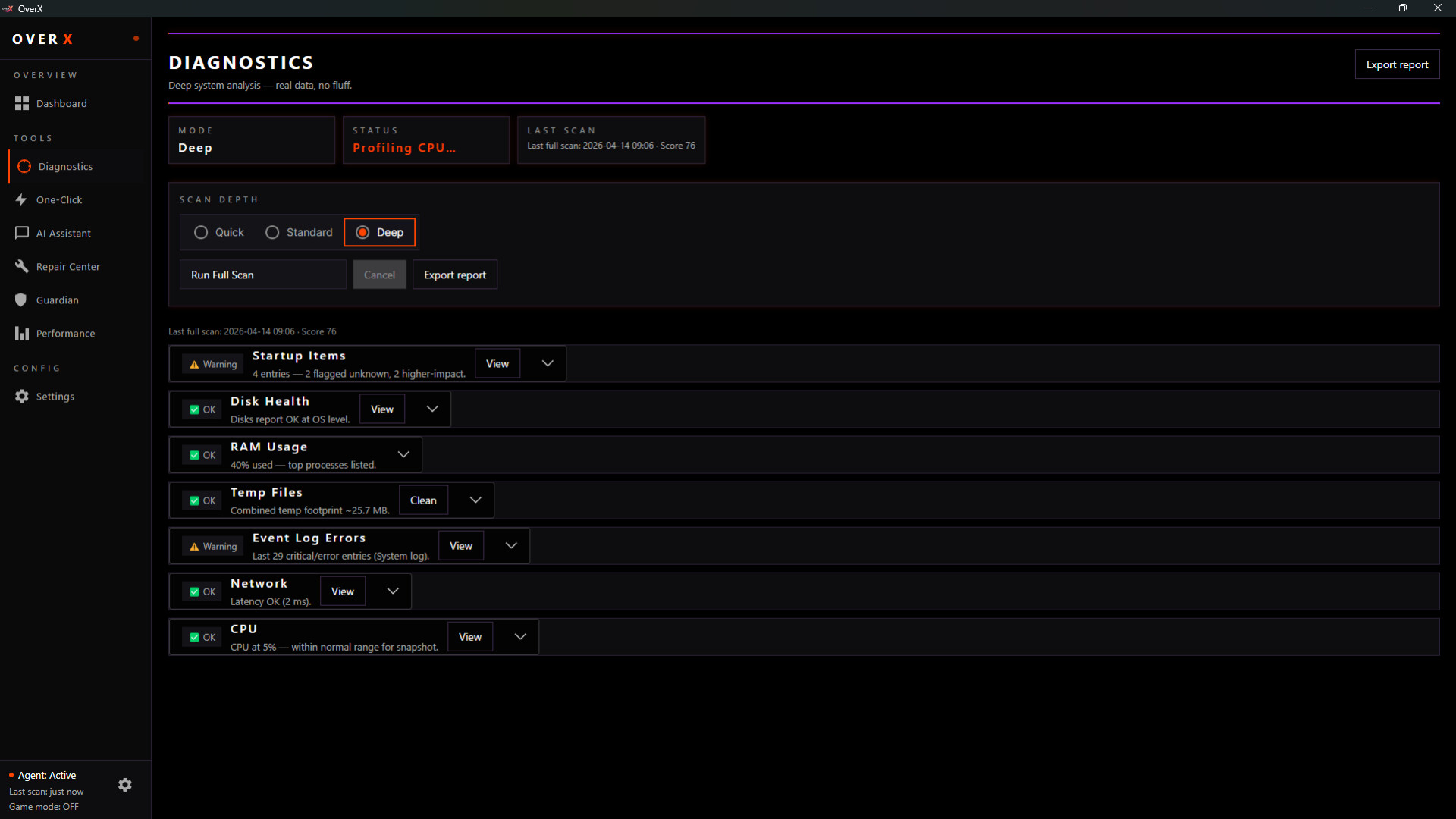 OverX is a lightweight system health assistant designed to help you monitor, understand, and improve your PC’s everyday performance.