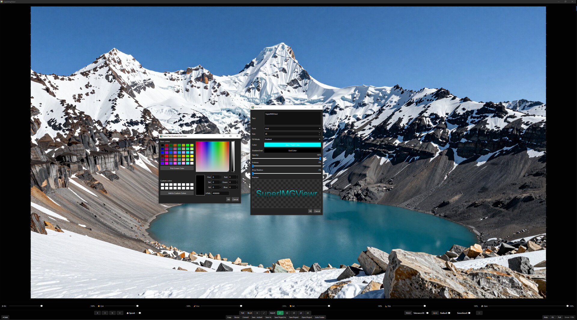 SuperIMGViewr also  allows for a customizable user interface colours to match your preferences. It also deals with some batch processing of transparent images with decreased fuss compared to other sfotware. As well as to convert, resize, rotate, watermarking  or edit a single preference on all selected images.