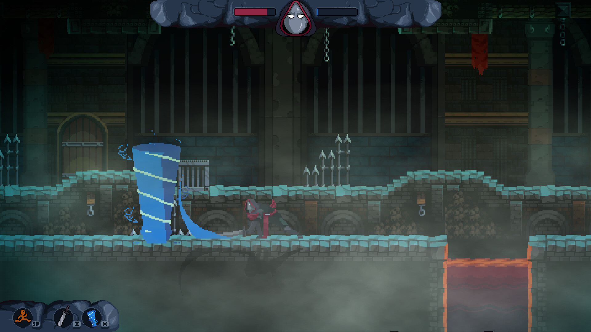 Night Creed is a 2D platformer. You control a character and move horizontally, fending off waves of enemies from both sides, both ground-based and flying. The player can use rolls to dodge attacks, use magic to destroy large groups of enemies, and collect life and mana orbs, which are needed to use magic. At the end of each wave, a boss appears—a unique enemy with a large amount of health and a unique attack pattern.