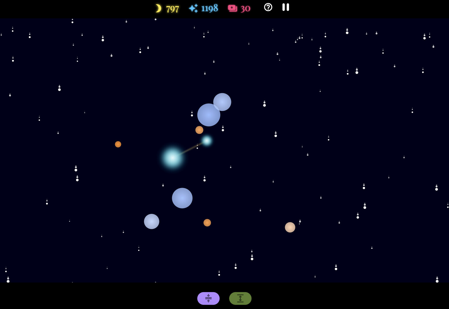 However, the universe is constantly expanding. As the difficulty ramps up, once-beautiful equilibriums are threatened with collapse. Continuously tune these deteriorating orbits and challenge yourself to see how long you can sustain your society of stars (star systems).