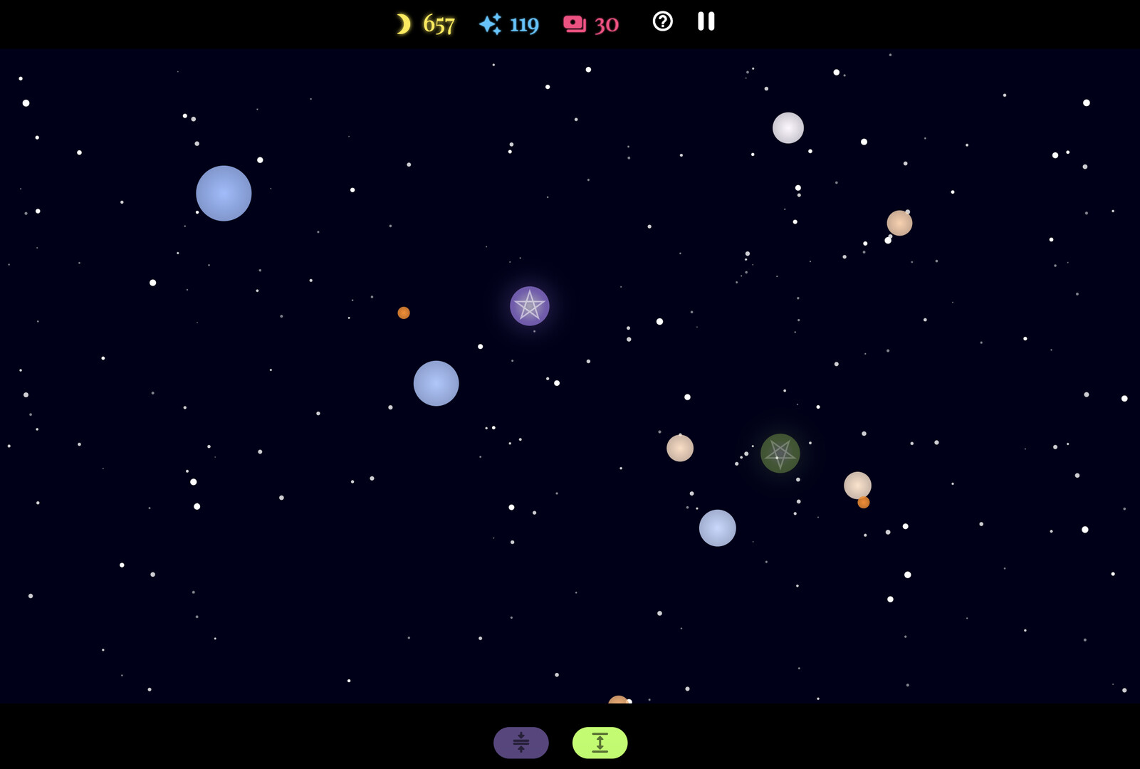 However, the universe is constantly expanding. As the difficulty ramps up, once-beautiful equilibriums are threatened with collapse. Continuously tune these deteriorating orbits and challenge yourself to see how long you can sustain your society of stars (star systems).
