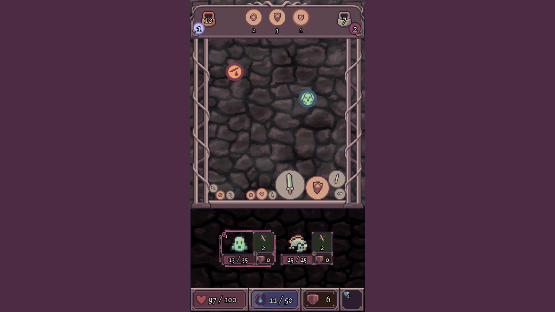 Die often, and die again. Start from the beginning. Gather treasure - powerful items that add to your deck and grant new special abilities. Throw bombs and use potions. Unlock new classes and new starting gear. Fight bosses, die again.