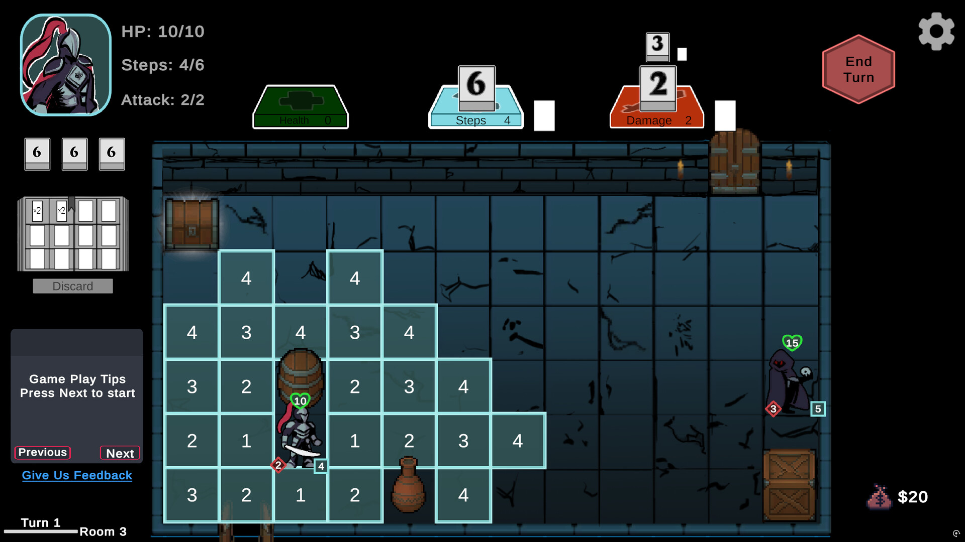 Tri Die is a turn-based strategy roguelite where every turn starts with a roll of 3 dice. Assign them to Movement, Attack, and Health, then make the best tactical decision you can to survive grid-based dungeon runs, defeat enemies, and build powerful combinations through special dice, modifiers, and items.