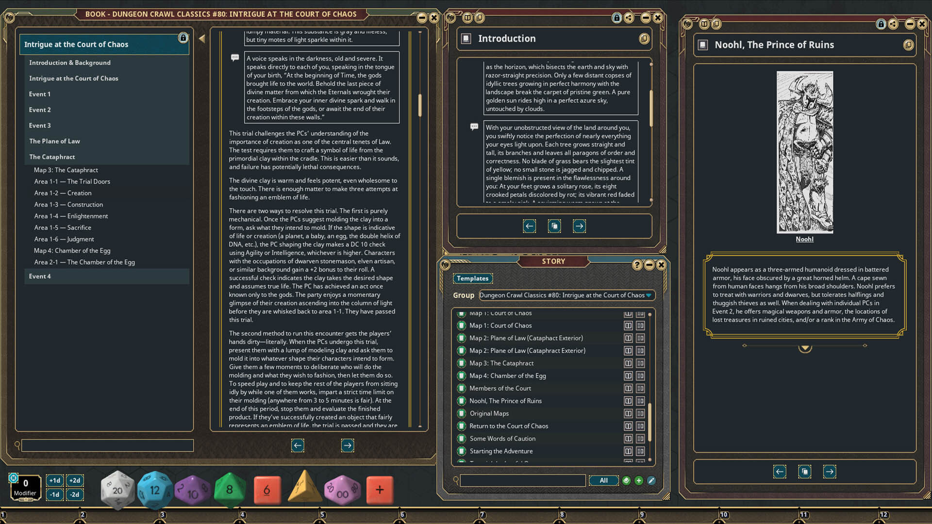 Requires: The free Fantasy Grounds virtual tabletop (VTT) software and a one time purchase of the Dungeon Crawl Classics ruleset.