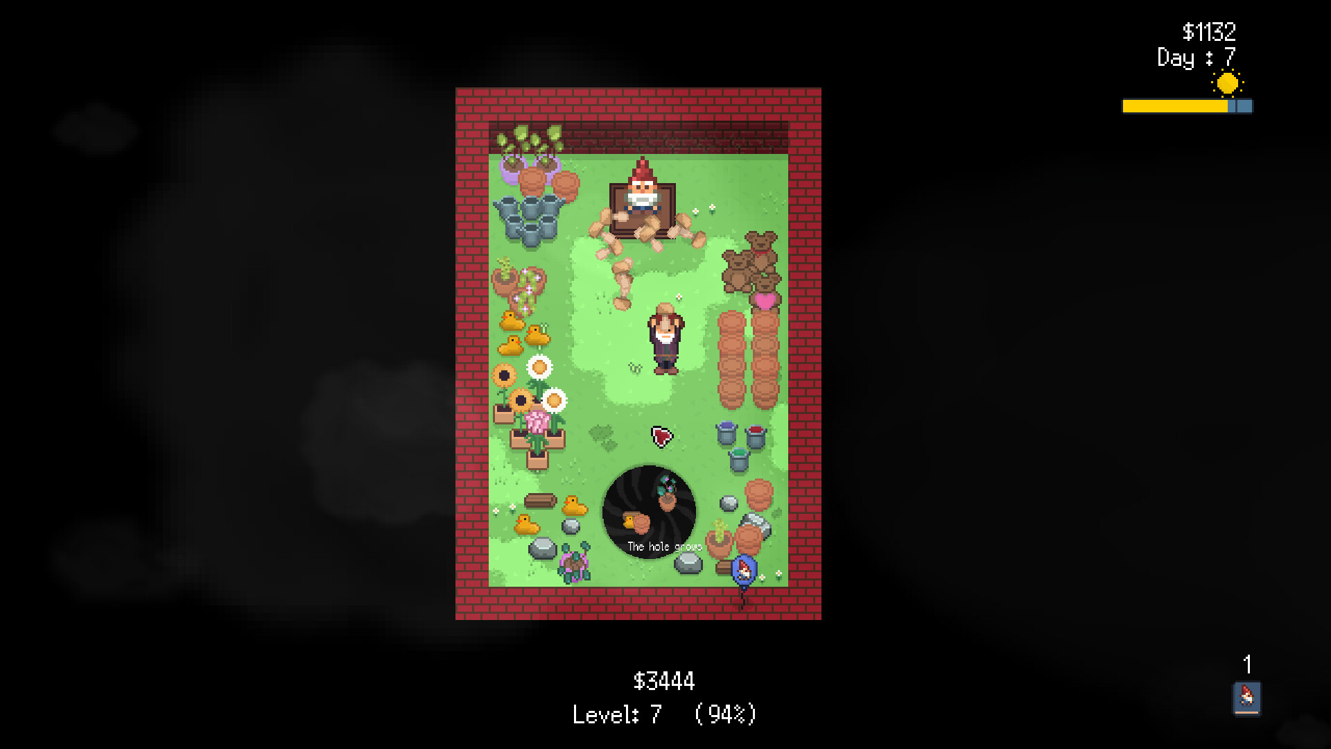 A mushroom-tossing incremental game about growing a hole. Earn money to buy upgrades, hire gnomes to grow more mushrooms, and feed the hole until it consumes the world.