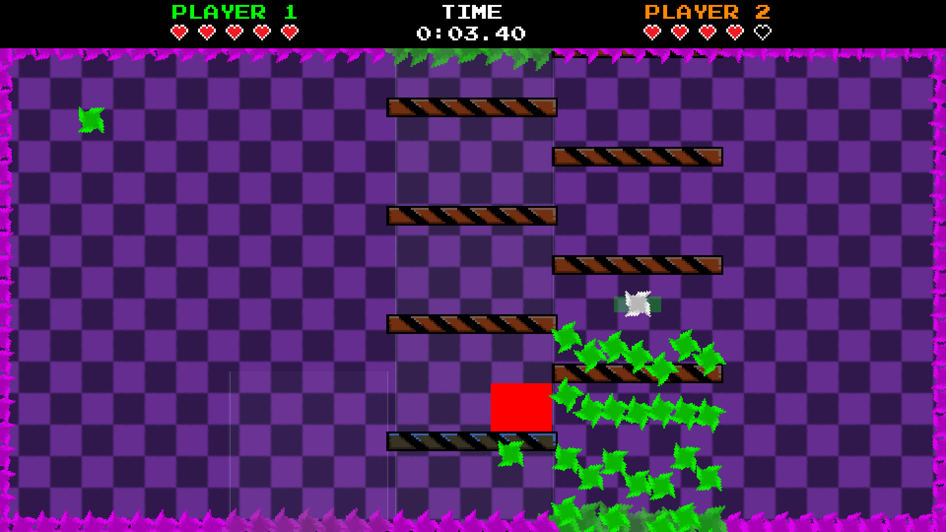 You play as a small red square trapped in a hell of geometric madness. Every corner, every wall, and every moving platform can become a deadly trap. The world around you is constantly changing, figures attack from all sides, and the chaotically moving platforms only intensify the madness. A timer shows how long you can survive in this dangerous place.