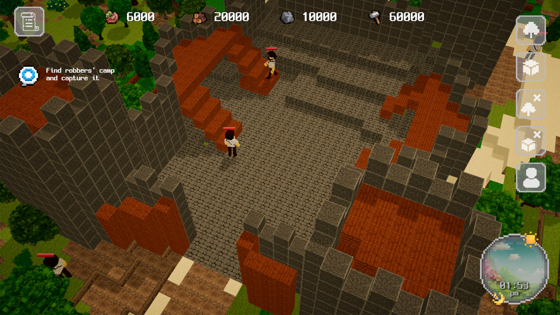 As you develop your settlement, you’re free to shape it however you like. With a variety of decorative elements and the ability to modify the terrain by placing or removing blocks, creativity plays a key role in how your world evolves.