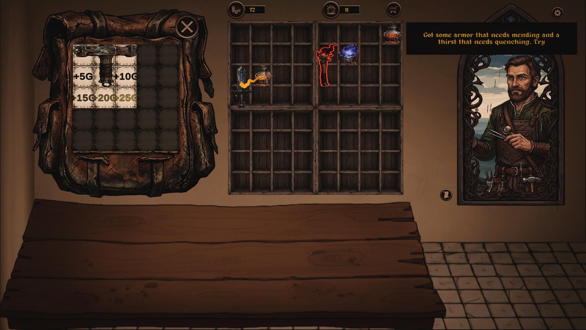 Leave behind swords, dungeons, and the rush to save the world. Backpack Alchemist offers you a peaceful yet mentally stimulating medieval shop experience. Step behind your old wooden counter, light your candles, and unzip your custom leather backpack. In your world, everything starts with fitting the right item into the right place.