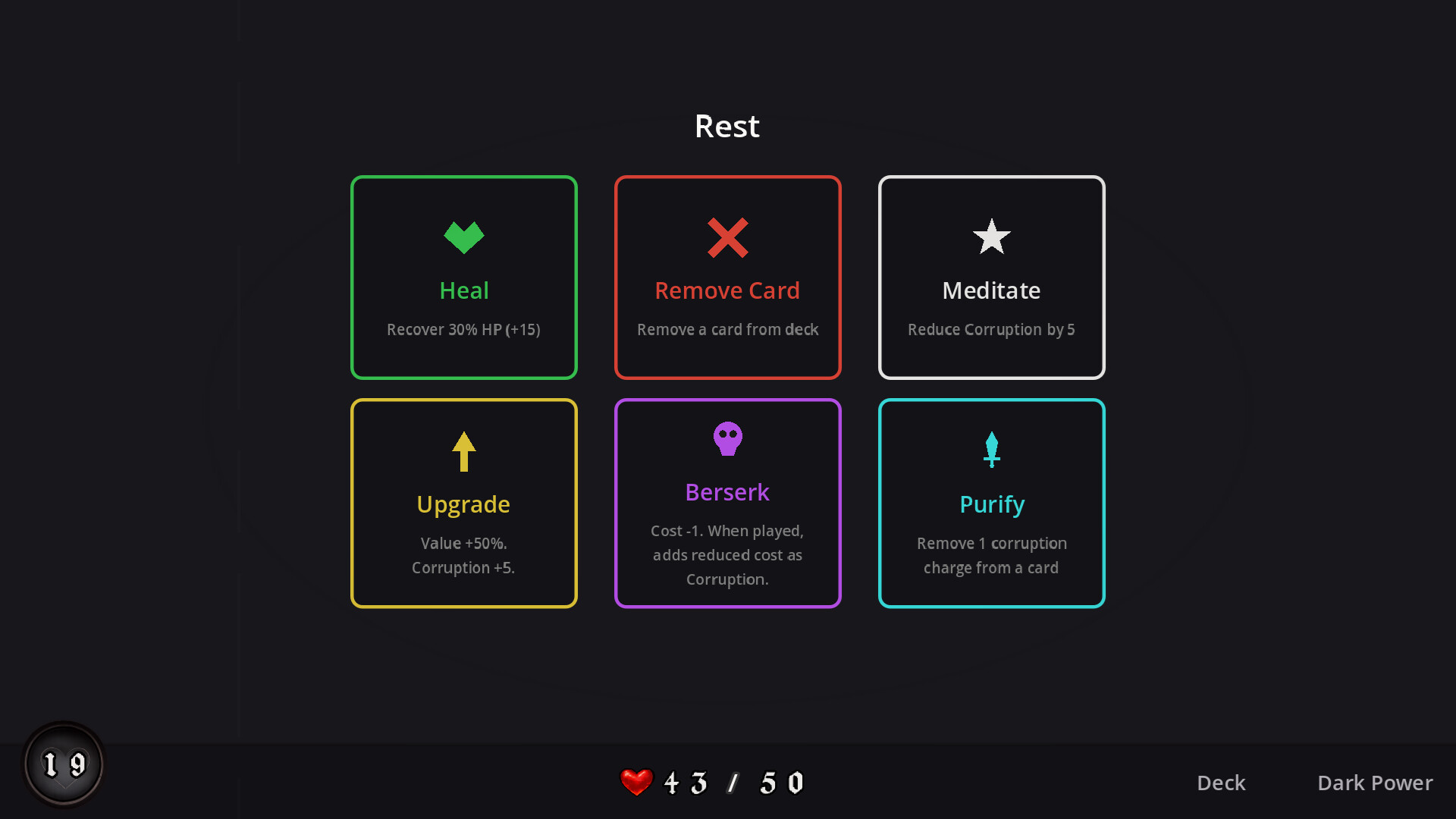 - Create different playstyles through cards, dark powers, and corruption