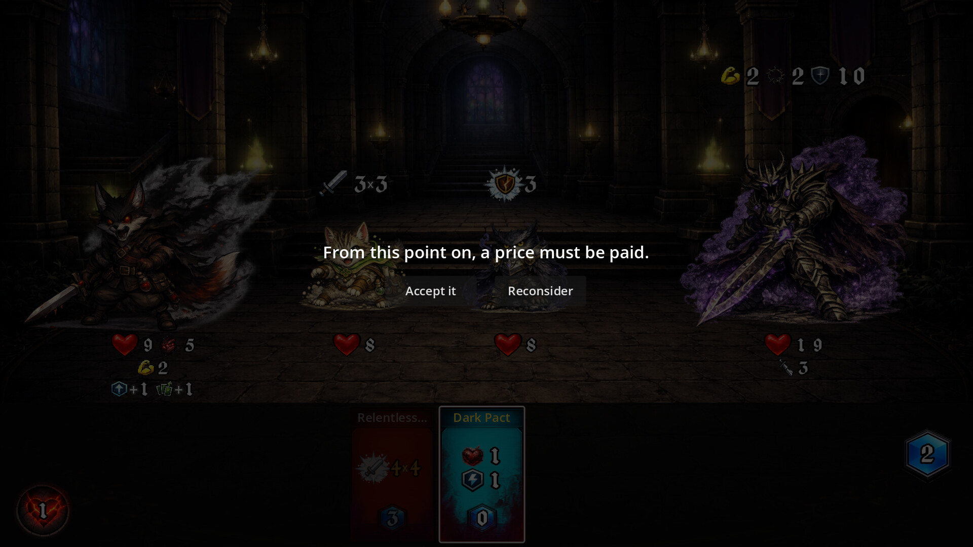 Dark power makes you stronger — but each bargain erodes your mind. A dark fantasy deckbuilding roguelite where your choices shape both your power and your ending.