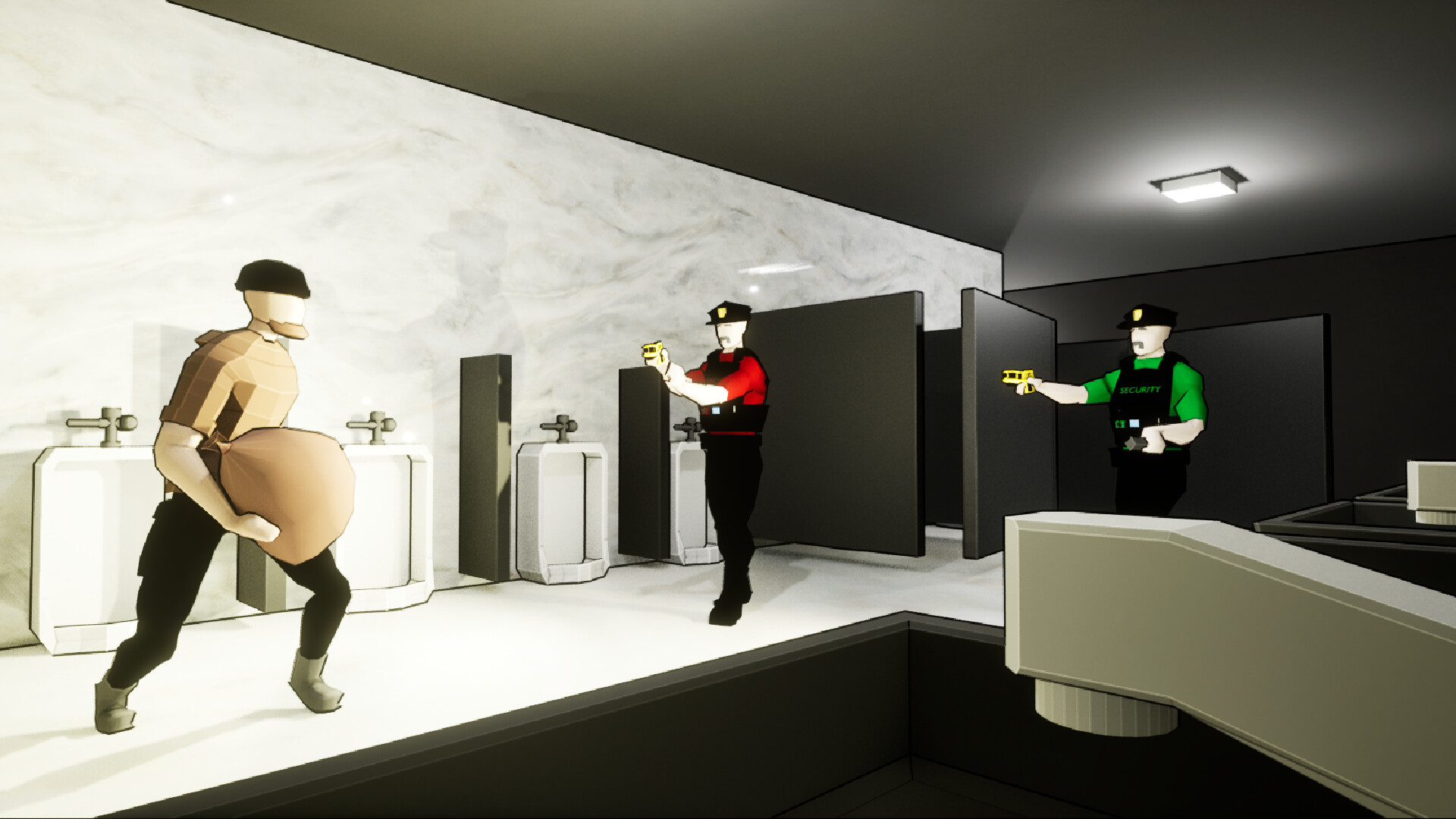- Patrol and secure a building from a first-person perspective