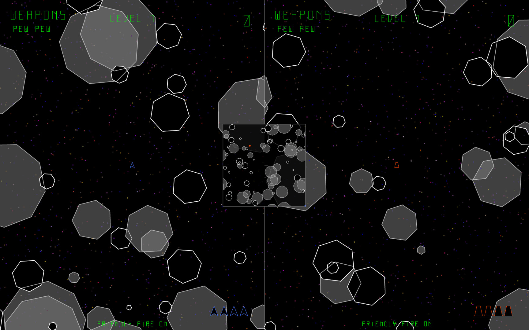 Newtonia is a 2D top-down space shooter. It features local split-screen PvP or PvE. Pick up new weapons and destroy all the asteroids, progressing through the levels. Try and beat your own high score.