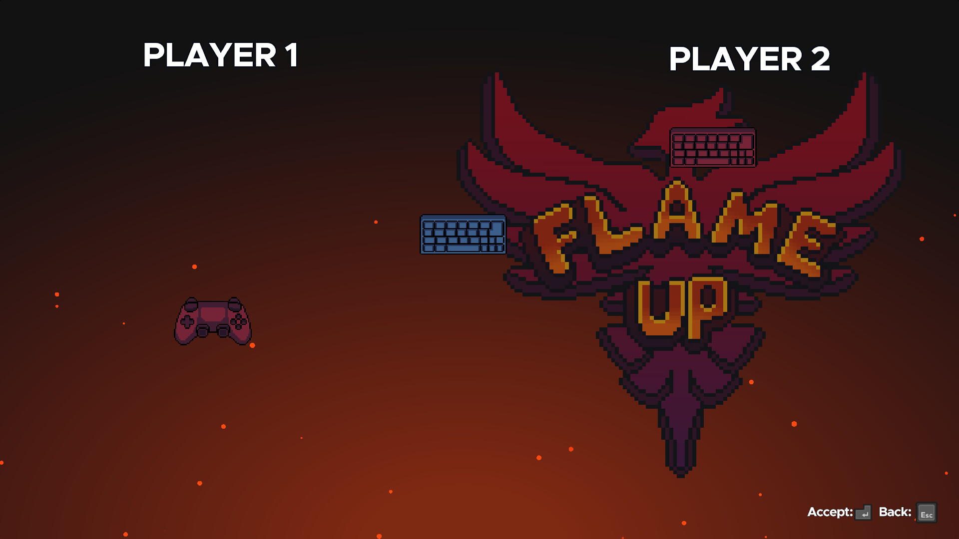 Flame Up is a simplistic fighting game with no jumping, no blocking, no health, and no fuss, only you and your neutral. Featuring easy to learn systems, intuitive controls, and ROLLBACK NETCODE.