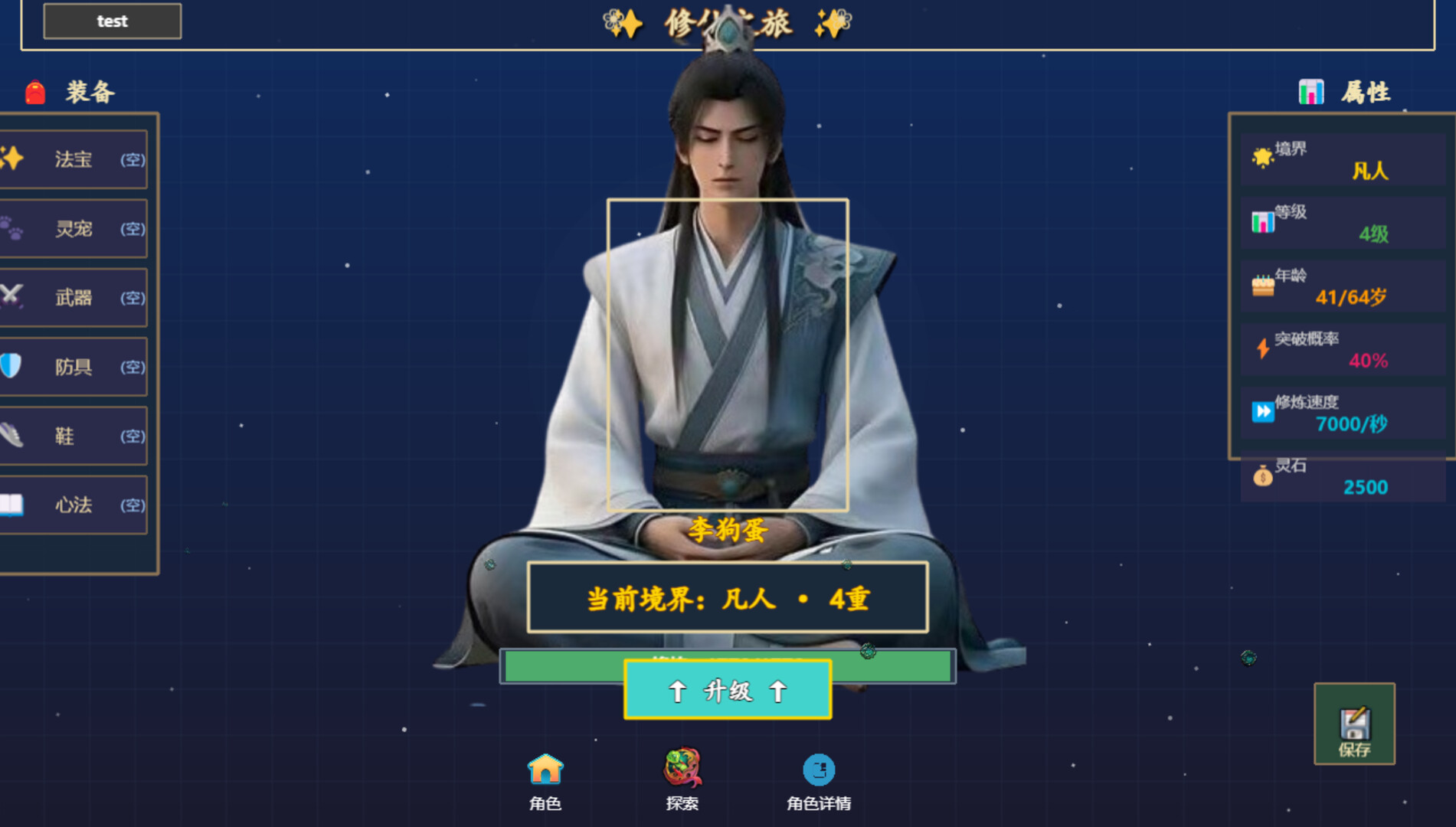 2. Age Mechanism (Core Rule): Cultivators have an age limit. In-game, 1 minute equates to 1 year. The maximum age for the mortal stage is 64. If a character reaches 64 without achieving a realm breakthrough, they will pass away. The game does not support manual saving; death is permanent, forcing a complete restart. Players are advised to carefully plan their cultivation progress.
