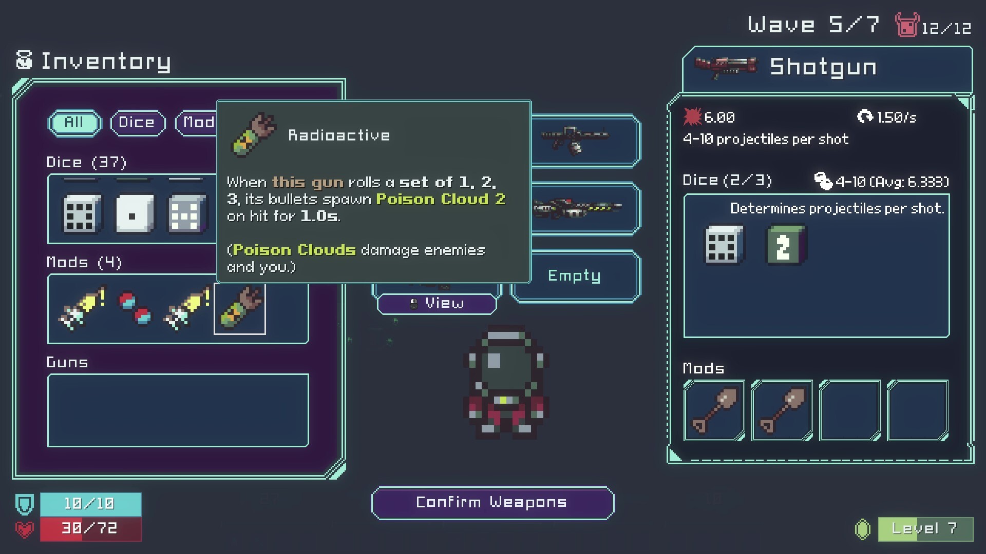 Guns roll dice. Dice trigger mods. Mods cause MAYHEM! Save the world from invading cosmic horrors by building crazy synergies with dice-driven weaponry.
