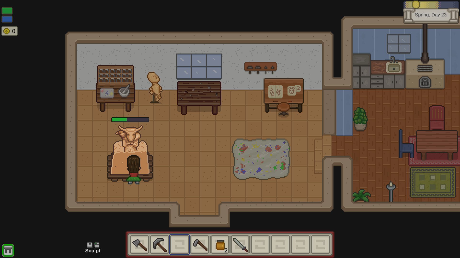 Arrived as an Art Student, your main goal is to improve as an artist while creating sculptures based on your experiences on the island and with your neighbors.