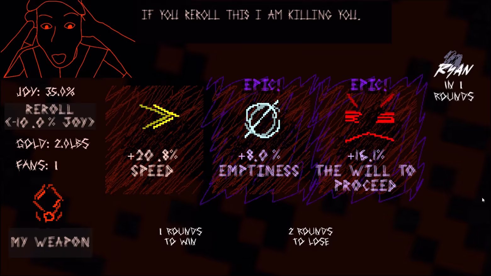 Each beloved pick from three is an opportunity to upgrade your weapon ball. Avoid rerolling your choices to keep the Ref happy so you can obtain rarer Augments that enable new playstyles. Gain additional Redirects to reposition in times of need while utilizing unconventional stats like Emptiness and The Will to Proceed. Scale your Hype and cater to your fans so they can fight alongside you.