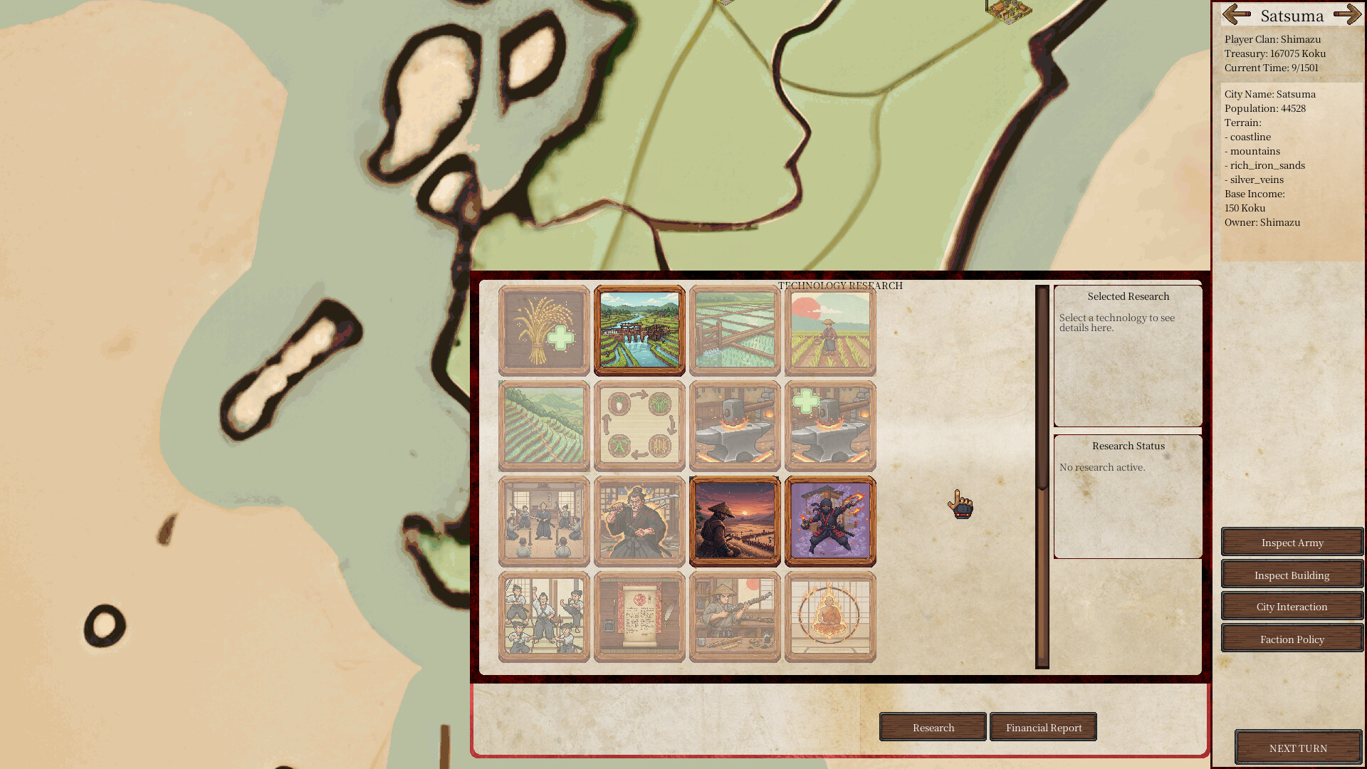 Conquer the fractured lands of Hinomoto. Blend deep turn-based empire management with thrilling real-time tactical battles in this 2D strategy game. Build your cities, research vital technologies, and lead your samurai armies to become the undisputed Shogun of the Sengoku era!