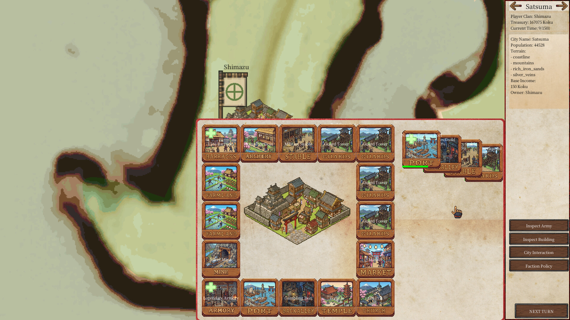 Conquer the fractured lands of Hinomoto. Blend deep turn-based empire management with thrilling real-time tactical battles in this 2D strategy game. Build your cities, research vital technologies, and lead your samurai armies to become the undisputed Shogun of the Sengoku era!