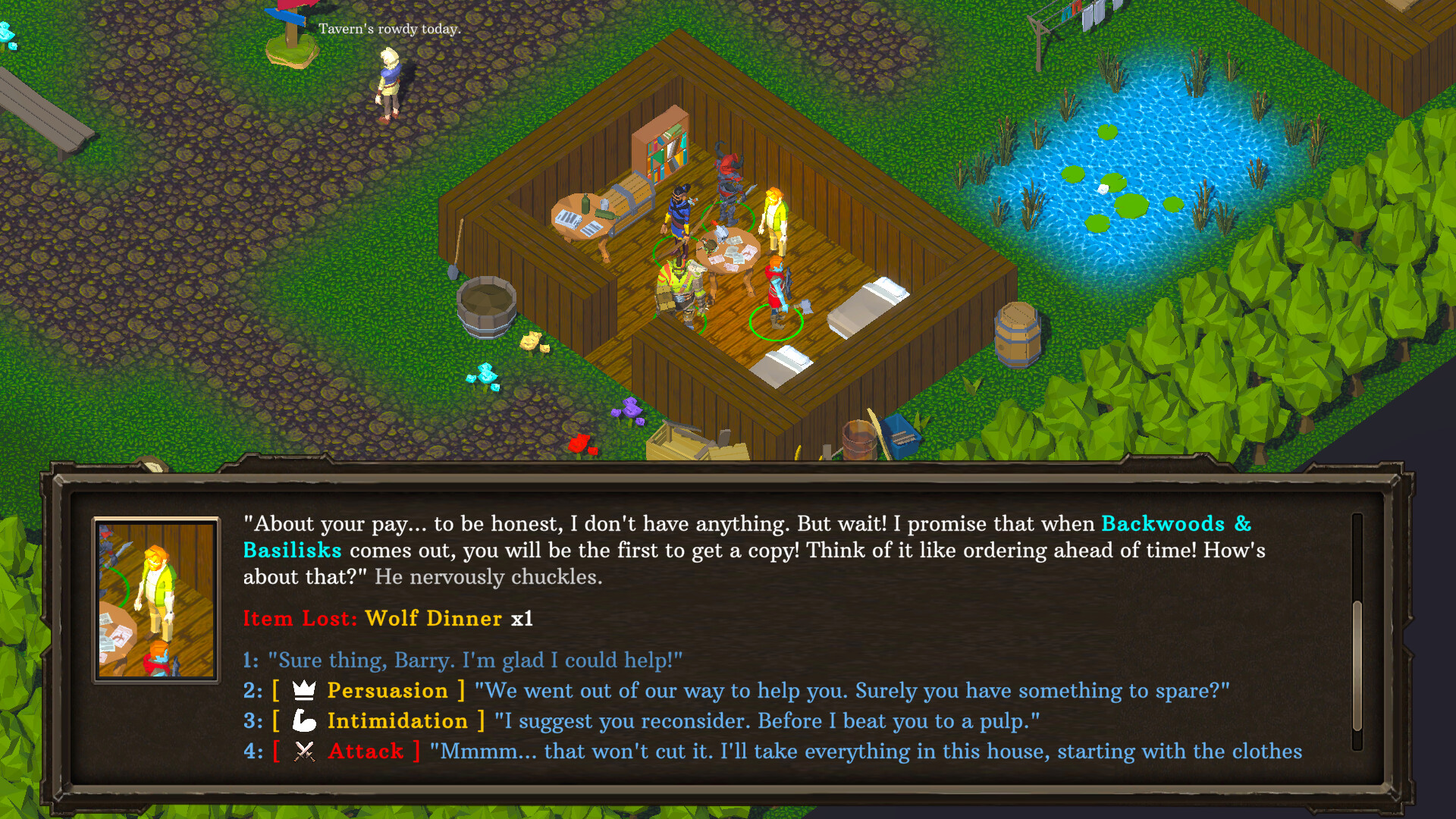 Engage in grid-based combat integrated on the same maps that you explore! Position your party in ambush positions prior to combat, or even bumrush neutral NPCs in broad daylight if you're unafraid of the consequences.
