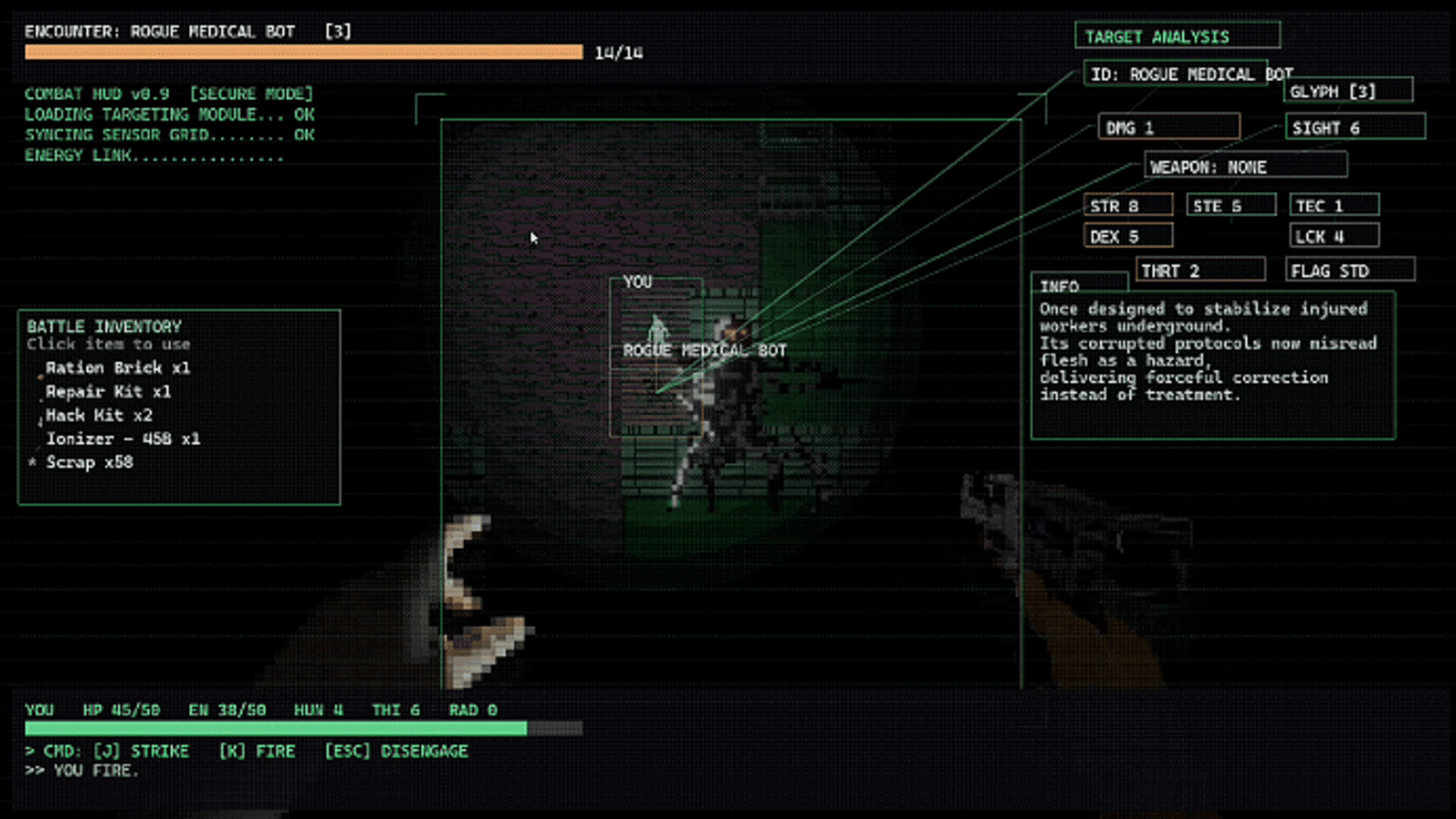 A dark sci-fi CRPG featuring survival mechanics, tactical combat, and exploration through a procedurally generated underground facility.