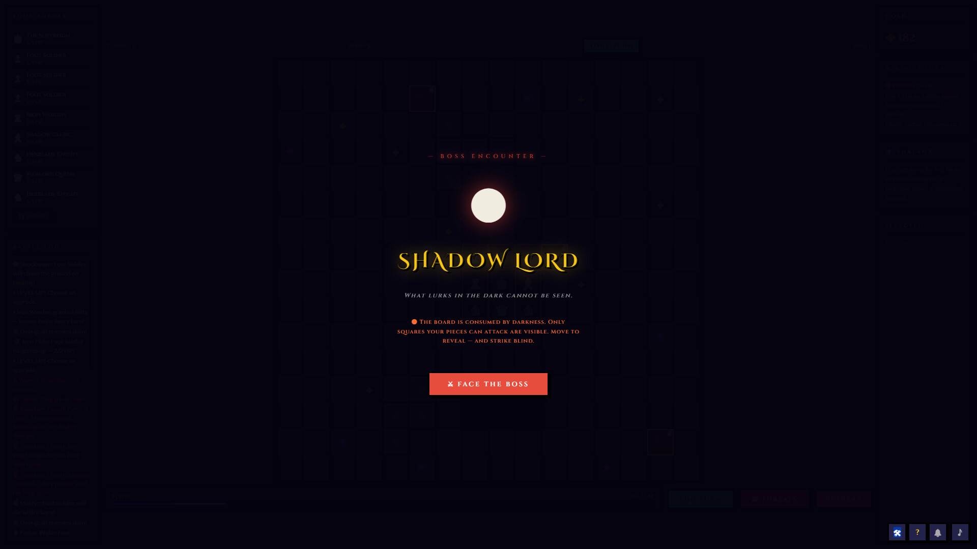 A roguelite chess RPG where your pieces evolve beyond the board. Unlock branching skill trees, recruit and build your warband, then battle through ten handcrafted boss encounters, each with unique mechanics designed to dismantle your strategy.