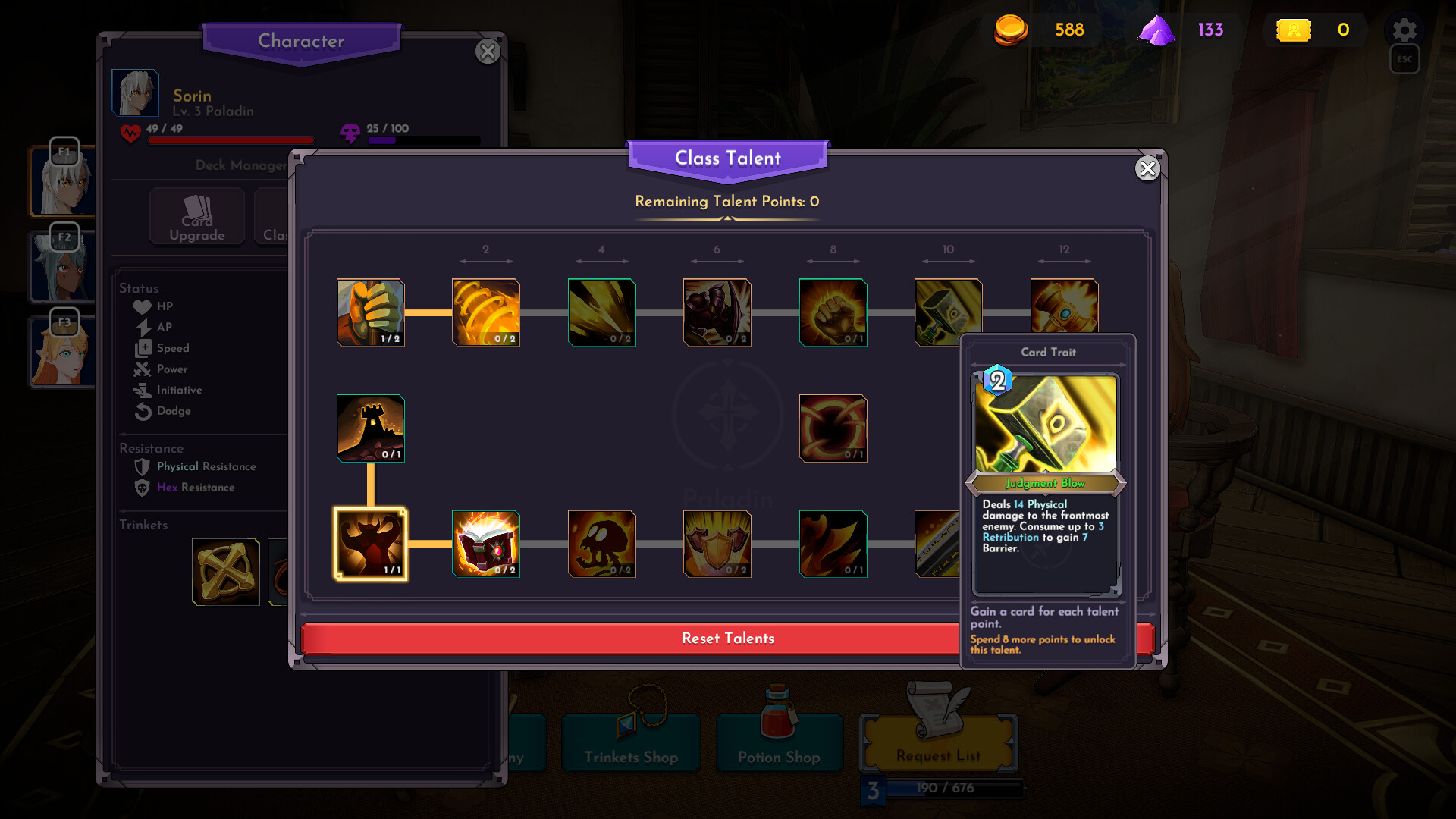 Trinkets reinforce each character’s strengths, and level-ups and talent choices further define each class build.