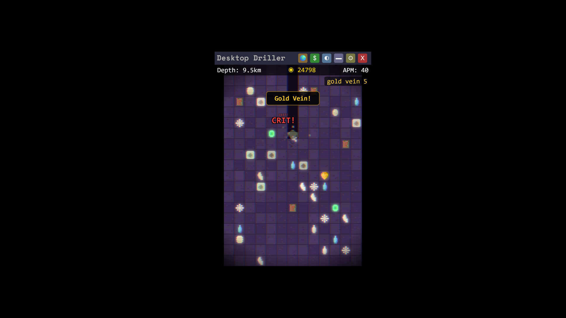 The entire game runs in a minimalist 236×340px frameless window that stays on top of your other applications. It’s designed for zero distractions—just place it in the corner of your screen and let your regular PC usage do the digging for you.