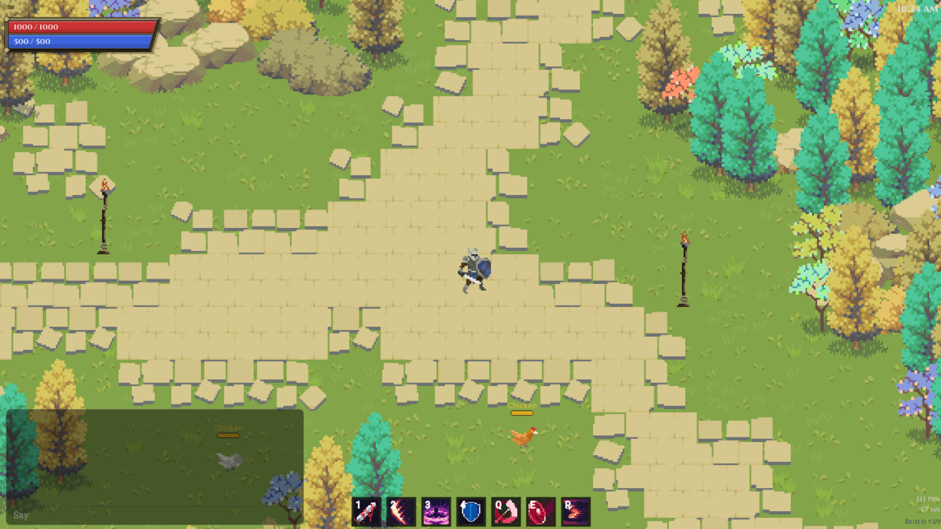 Vanguard is a pixel-art multiplayer MMORPG with top-down action combat. Think Realm of the Mad God meets WoW meets Path of Exile. Four classes with their own ability kits - Knight, Mage, Priest, Ranger. Build your character, group up, and run dungeons.