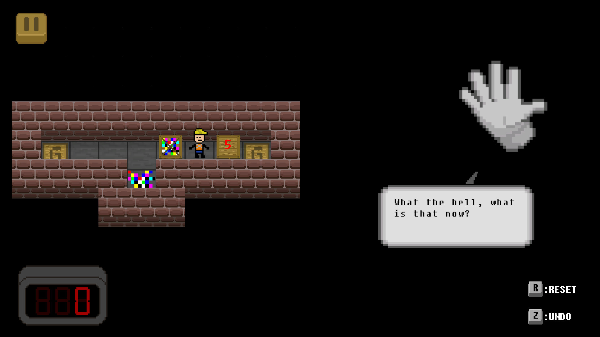 UnDo is the story of a player trying to escape deletion from an ordinary box-pushing game that is slowly fading into obscurity.
