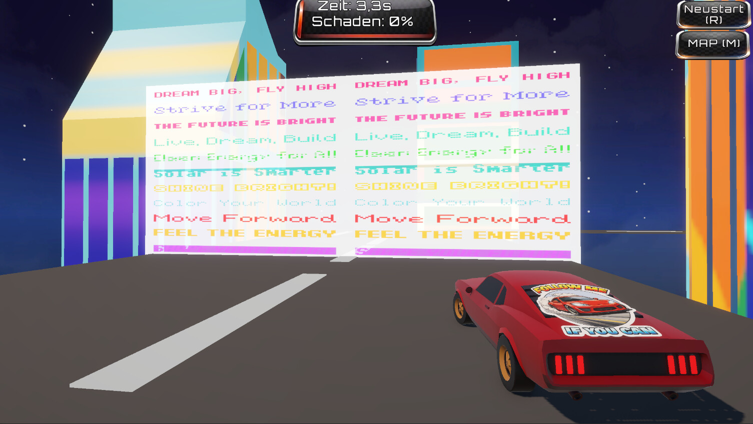 • WASD / Pfeiltasten: Gas, Bremse & Lenkung (Physikbasiertes Fahrgefühl)