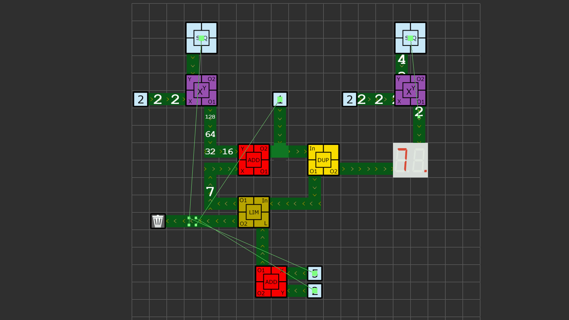 By placing mathematical operators on a grid and connecting them by conveyor belts you need to get to a specific result in order to solve tasks and level up.
