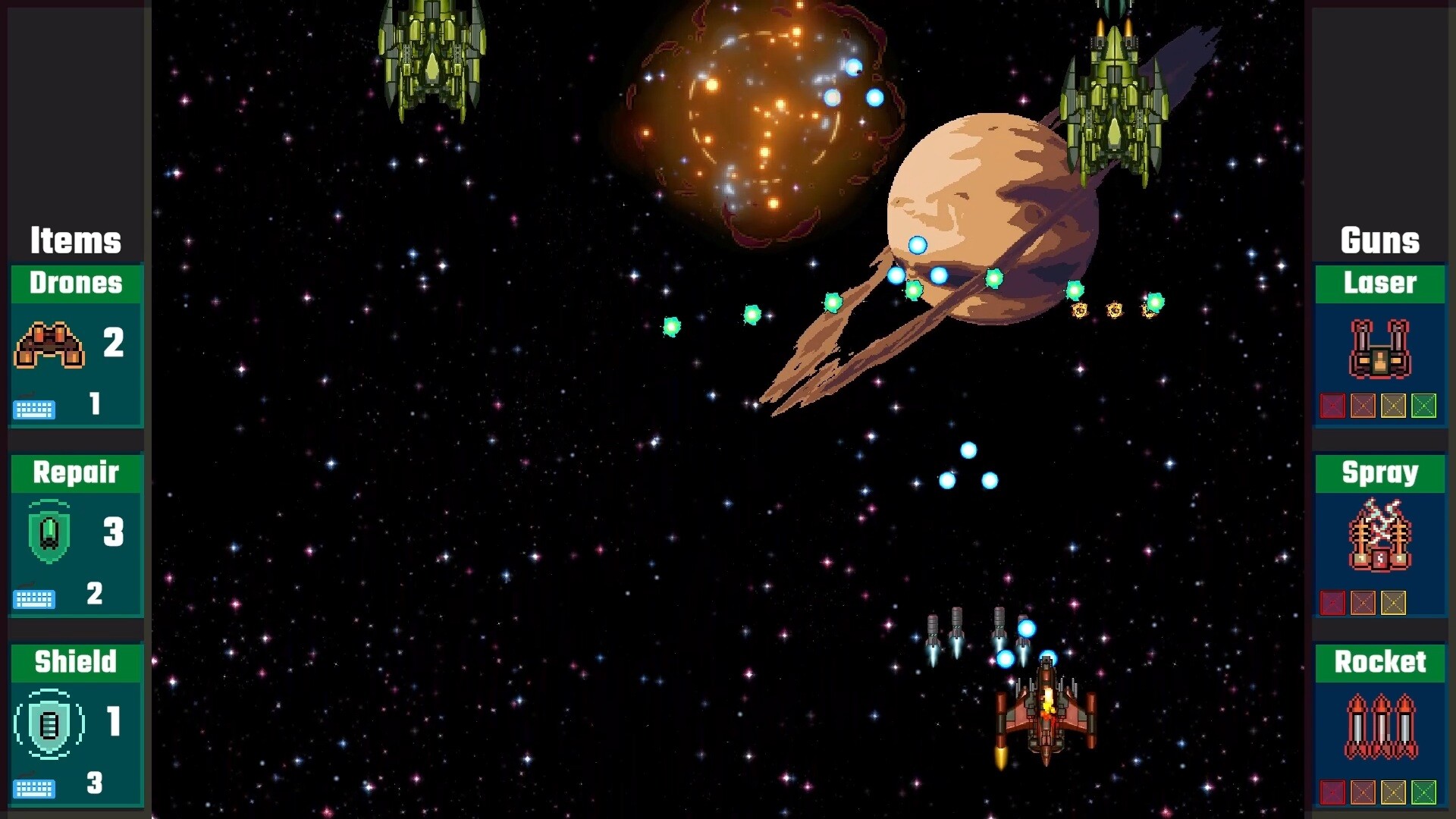 The year is 2248. You play as Anthea, a pilot for the Spacing Guild. She's battling a pirate fleet. During the game, you'll need to destroy four leader ships.