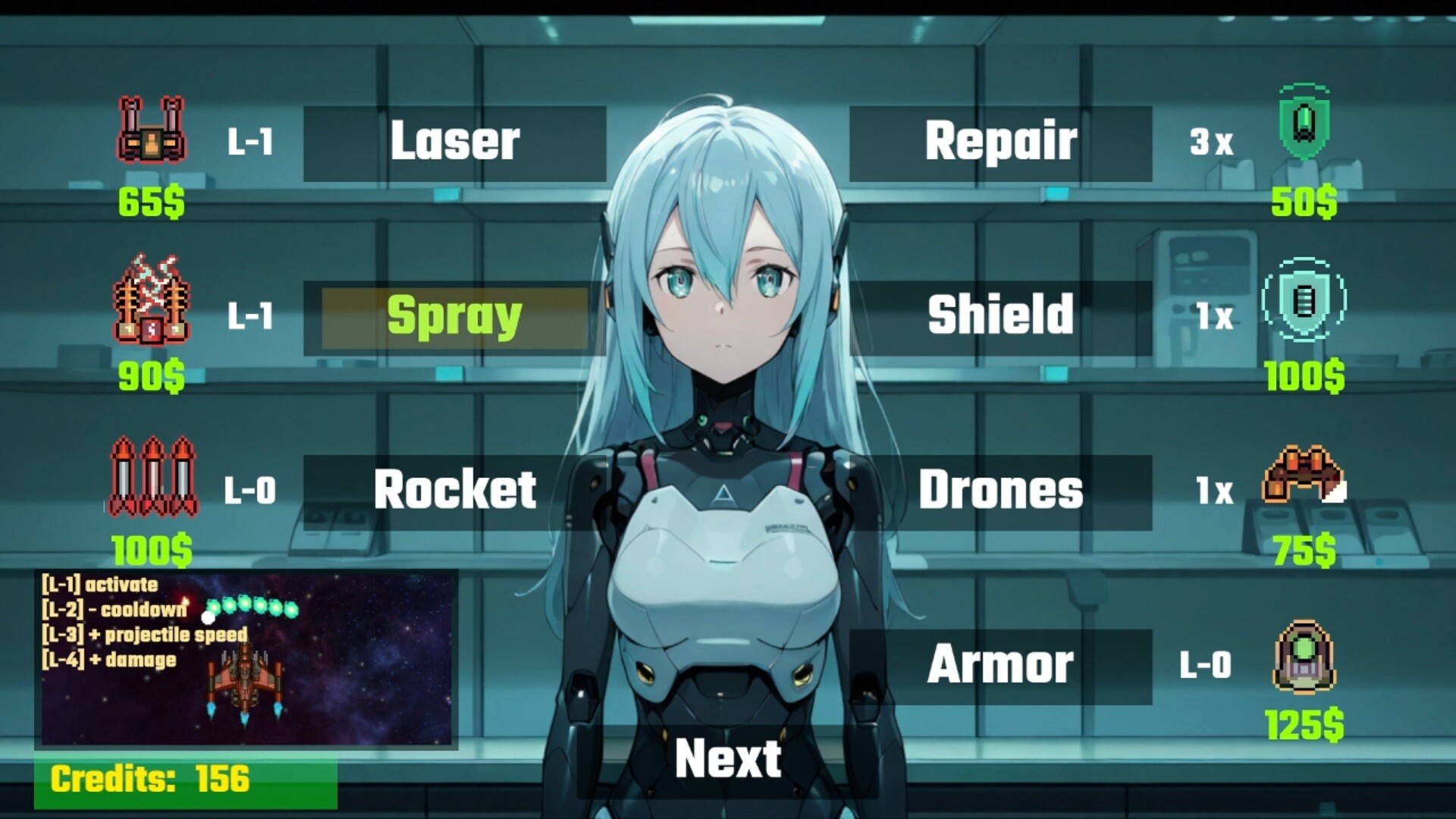The year is 2248. You play as Anthea, a pilot for the Spacing Guild. She's battling a pirate fleet. During the game, you'll need to destroy four leader ships.