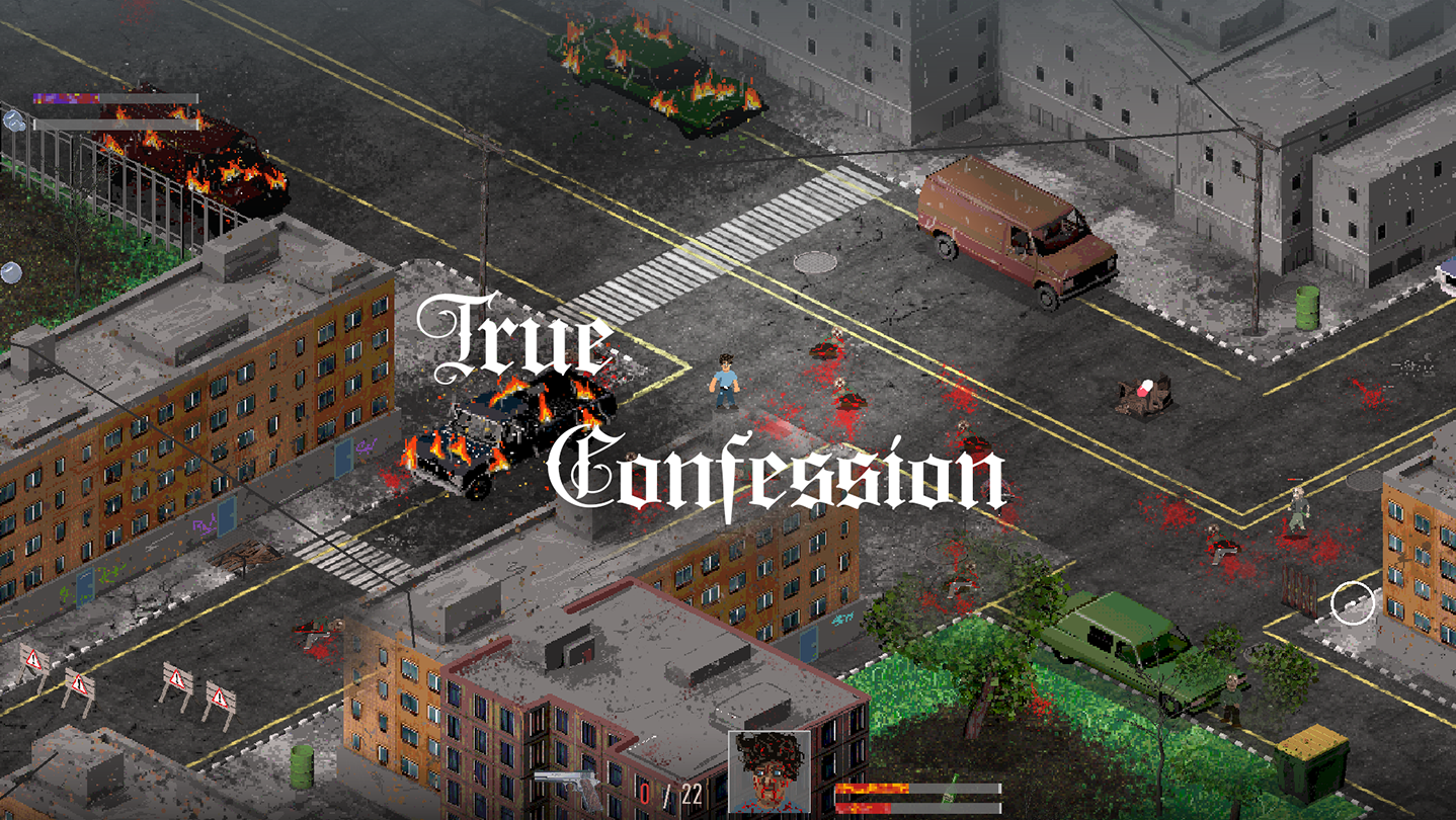 True Confession is a game aimed at fans of action movies 80-00 years (Heat, Training Day, The Wire, The Departured). In visual style resembles postal plus, crimsonland, gta2. So it's oldschool but seasoned with modern mechanics and deep religious and psychological plot.