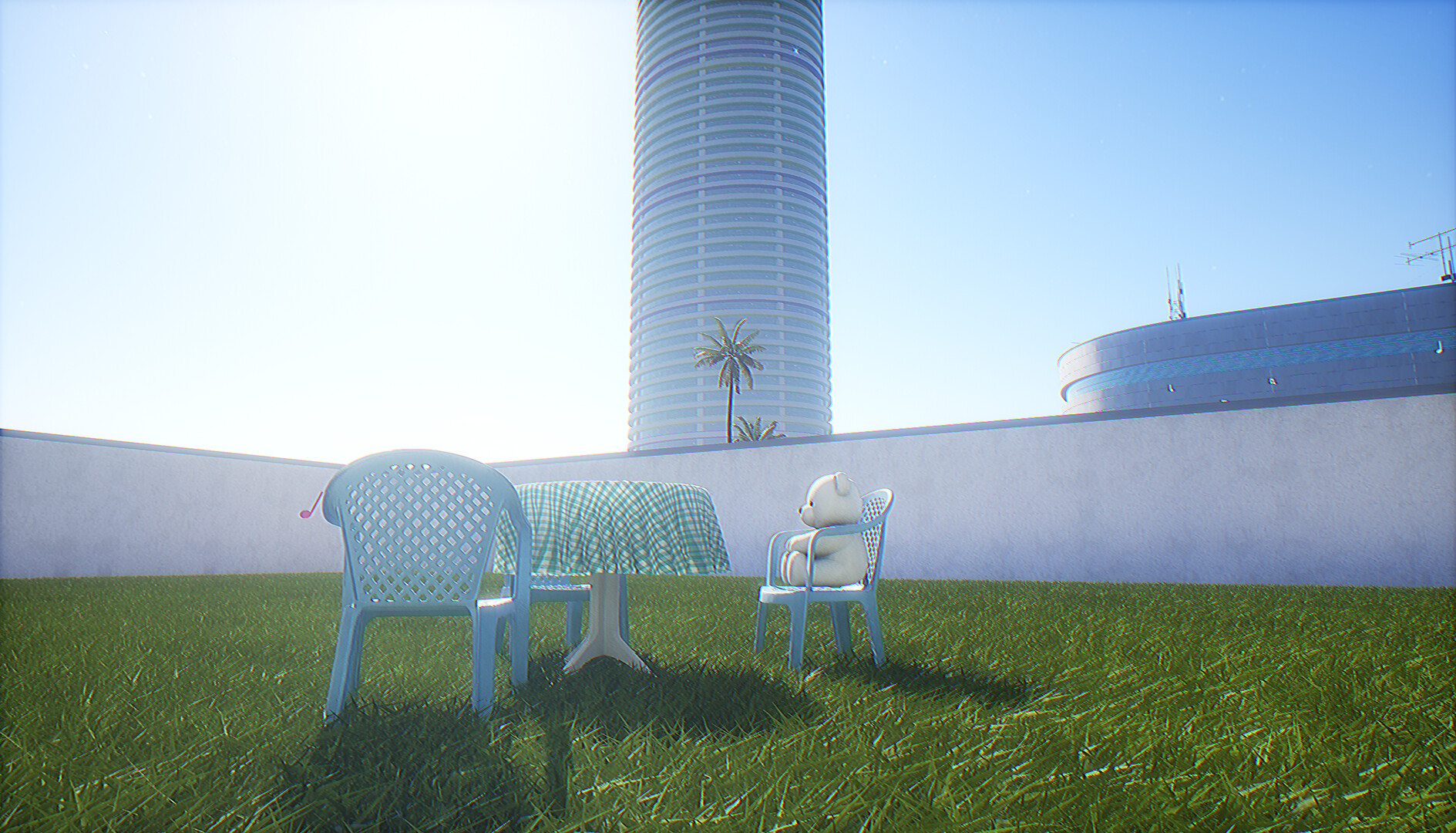 Explore a bright, surreal world shaped by liminal spaces and distant summer memories.
